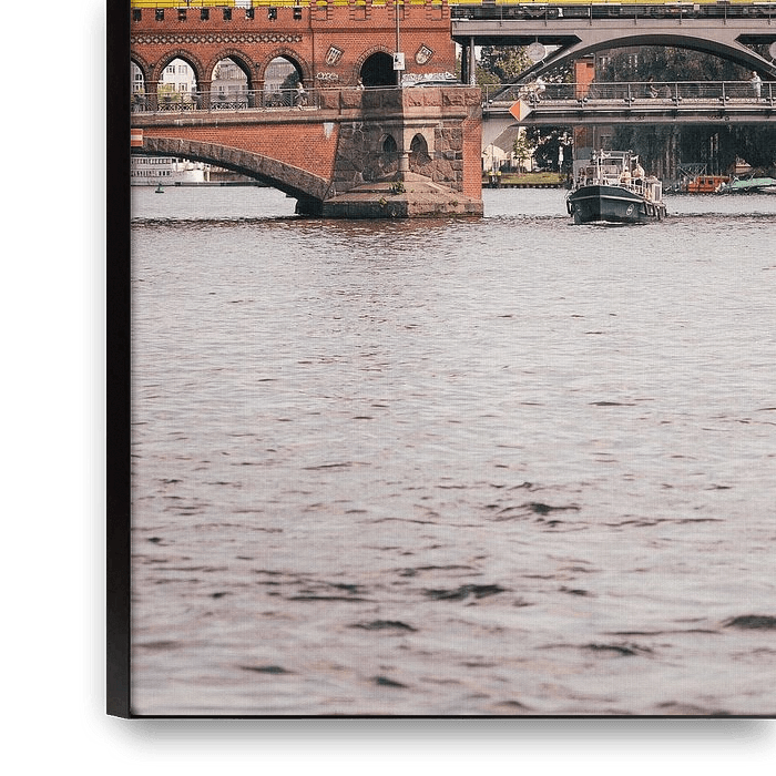 Während sich die Berliner U-Bahn über die Oberbaumbrücke schlängelt, bahnt sich das Boot den Weg in der Spree.