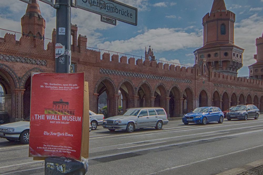 Die Oberbaumbrücke Berlin verbindet Ost- und West-Berlin und überspannt die Spree,