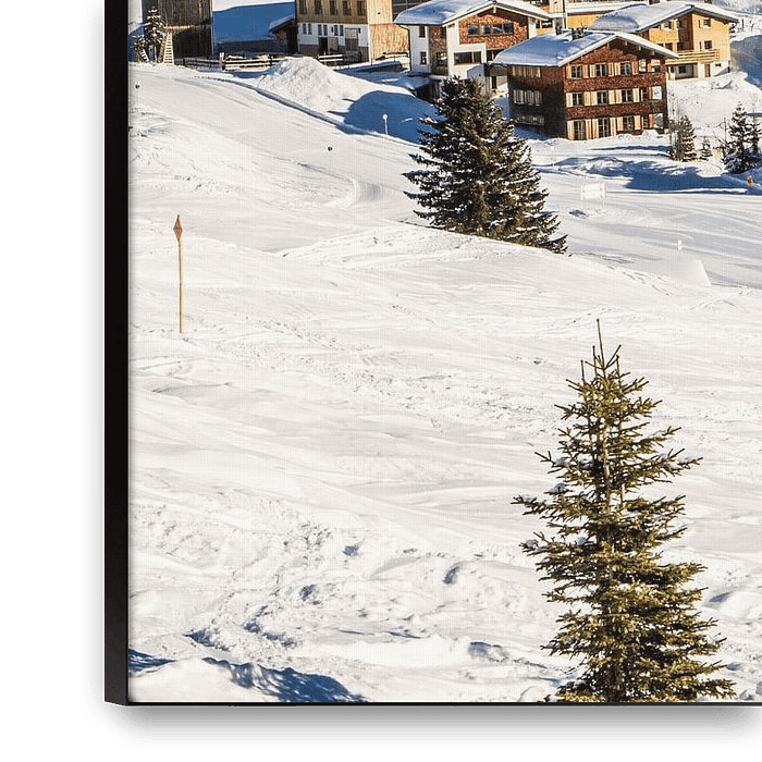 Bestelle das Foto Oberlech bei strahlend blauem Himmel im Winter von Ralf van de Veerdonk als Reproduktion auf Leinwand, Alu-Dibond, als Poster, Fototapete oder Acrylglasbild.