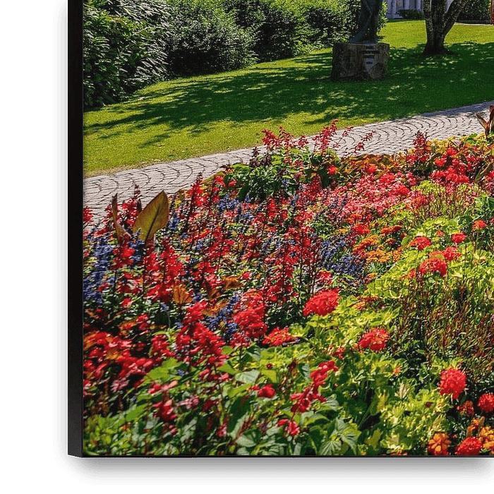 Bestelle das Foto Oberstaufen im Sommer mit schönen Blumen von Leo Schindzielorz als Reproduktion auf Leinwand, Alu-Dibond, als Poster, Fototapete oder Acrylglasbild.