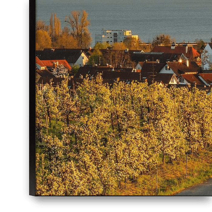Ihre gewählte Kunst auf Leinwand, gespannt in einem Aluminiumrahmen. Schnell und einfach austauschbar für eine frische Ausstrahlung und ganz nach Ihren Wünschen.