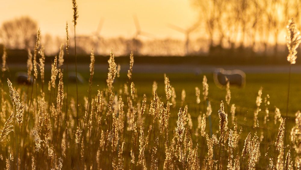 Grazende schapen badend in het winterse ochtendlicht van Walcheren