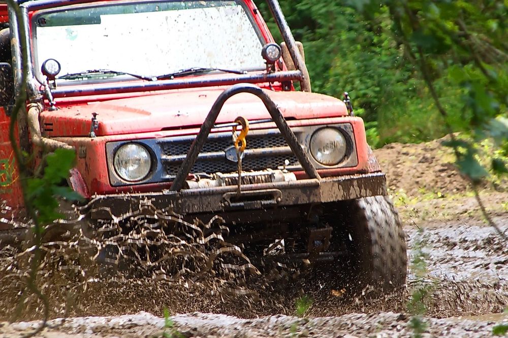 Auf dem Veranstaltungsgelände De Landsard bei Eindhoven tummeln sich regelmäßig verschiedene Gruppen mit Jeeps und 4x4-Autos im Schlamm.