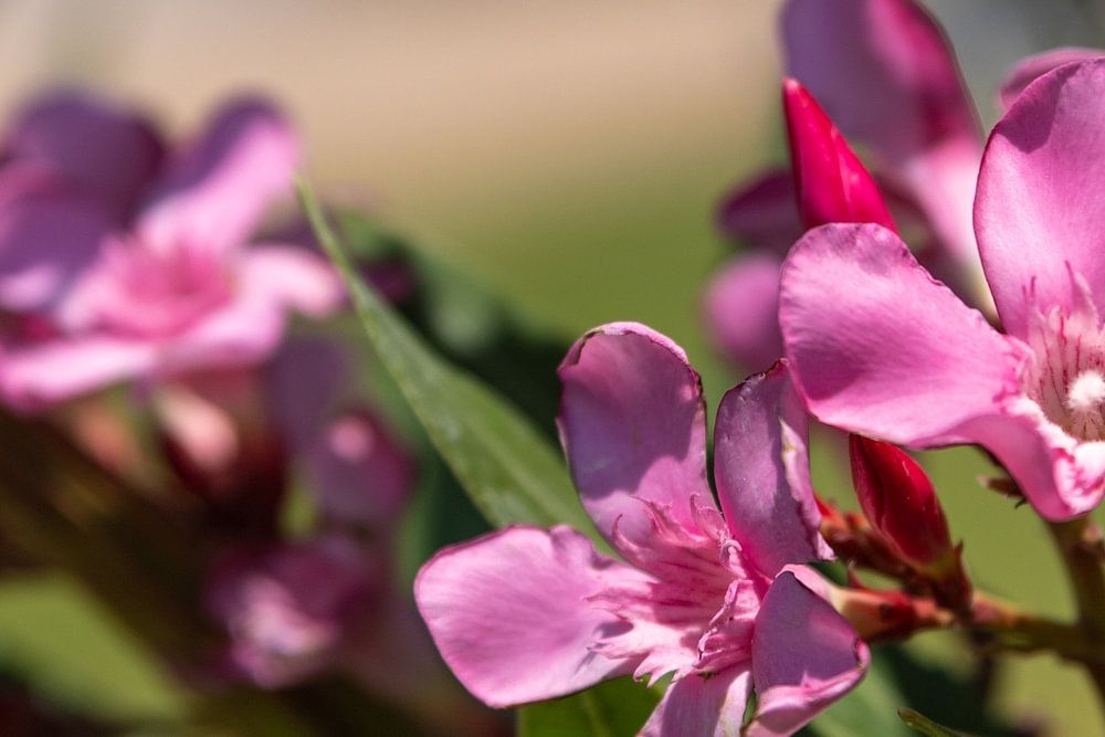 Ein weißer, rosa Oleander vor einem blauen Himmel. Ein schönes Sommerbild.