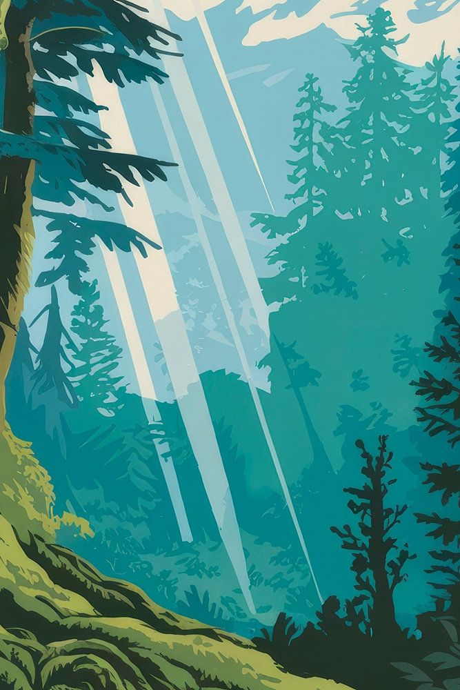 Eingehüllt in zauberhaftes Grün eröffnet sich ein Blick auf die majestätischen Berge, die von sanften Lichtstrahlen durchzogen werden. Die harmonischen Farben und die dichten Wälder vermitteln ein Gefühl von Ruhe und Naturverbundenheit. Ideal für das Wohnzimmer, bringt dieses Kunstwerk Gelassenheit und eine erfrischende Atmosphäre in jeden Raum.