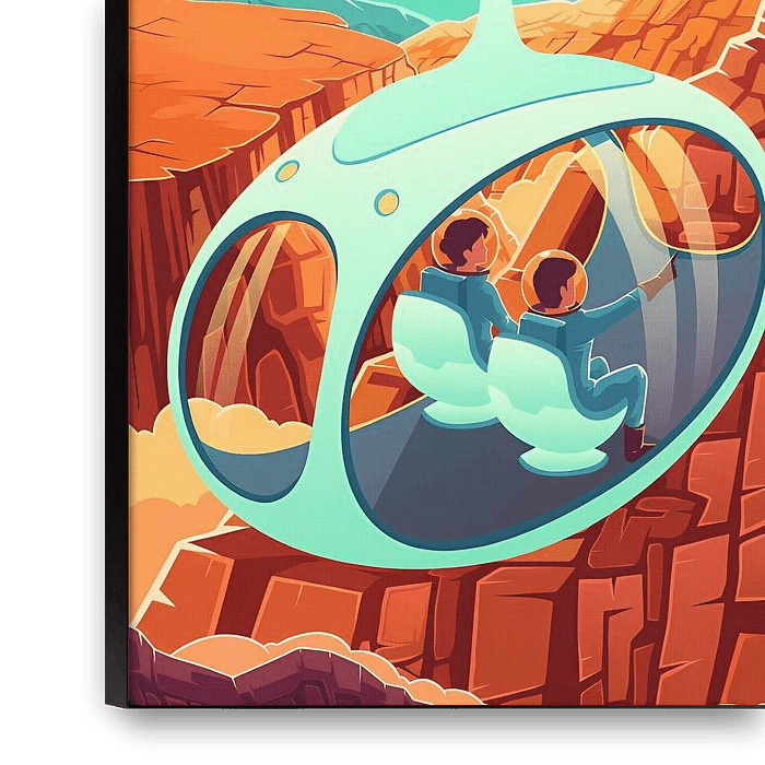 Bestelle diese Illustration Olympus Mons Seilbahnen von Steven Kingsbury als Reproduktion auf Leinwand, Alu-Dibond, als Poster, Fototapete oder Acrylglasbild.