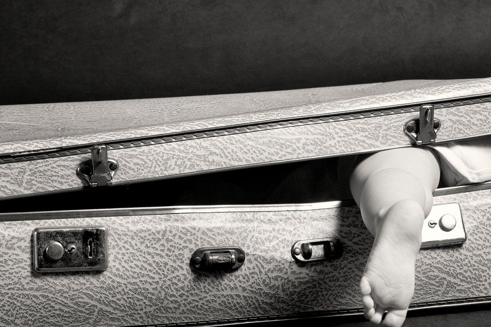 Kleine peuter verstopt zich in een koffer (geen photoshop!)