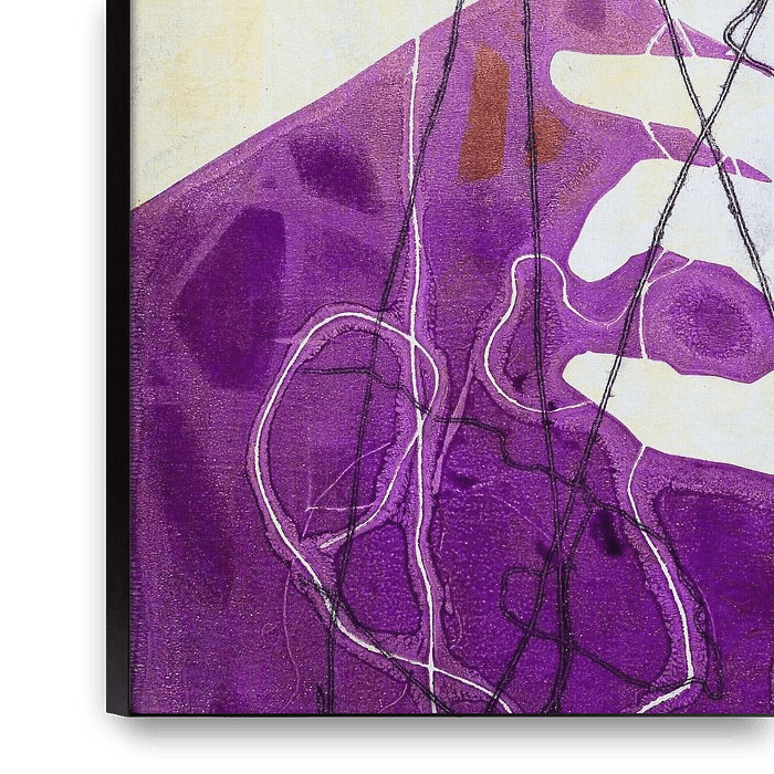 Bestelle dieses abstrakte Wandbild Orange und lila Kunsthandwerk von Lida Bruinen als Reproduktion auf Leinwand, Alu-Dibond, als Poster, Fototapete oder Acrylglasbild.