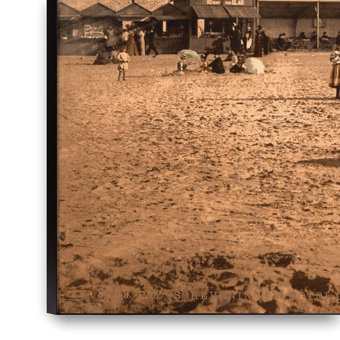 Foto vom Strand und dem Oranjehotel in Scheveningen, aufgenommen zwischen 1890 und 1900.