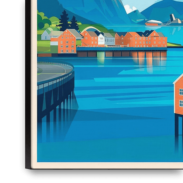 Vor einem strahlend blauen Himmel entfaltet sich das malerische Oslo mit seinen bunten Gebäuden am Wasser, umrahmt von imposanten Bergen. Diese harmonische Landschaft vereint Natur und Architektur auf faszinierende Weise, während sanfte Wellen die bunten Häuser der Küste umspielen. Einladend und lebendig, verkörpert dieses Motiv den…