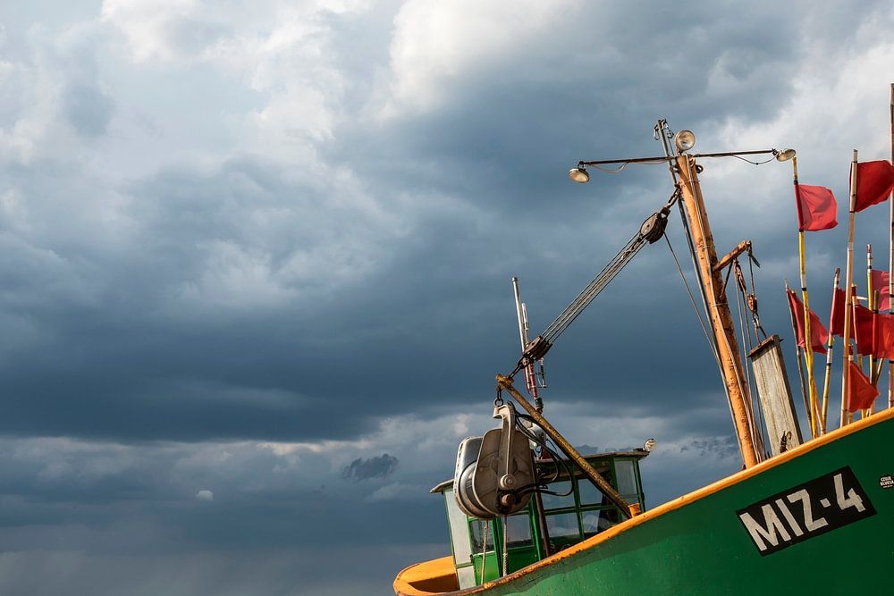 Fischerboot am Ostsee Strand von Misdroy / Miedzyzdroje, Insel Wolin, Westpommern, Polen, Europa | fishing boat at the baltic beach in Miedzyzdroje, Wolin Island, West Pomeranian, Poland, Europe