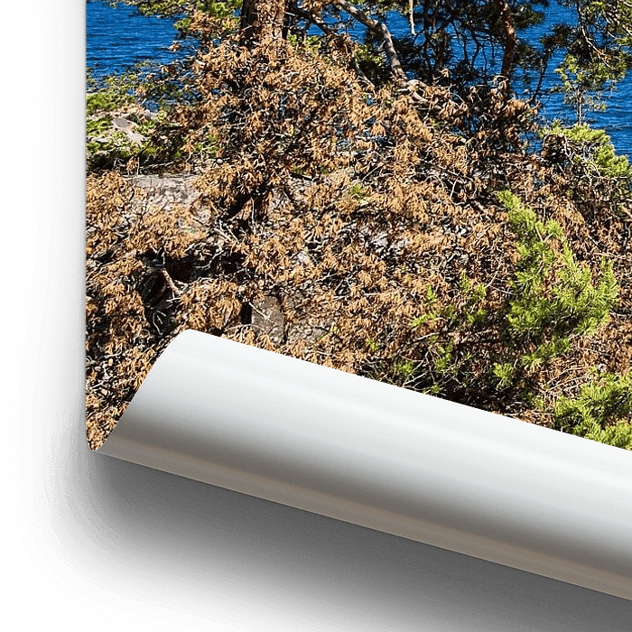 Bestelle das Foto Ostseeküste mit Felsen und Bäumen auf der Insel Hasselö von Rico Ködder als Reproduktion auf Leinwand, Alu-Dibond, als Poster, Fototapete oder Acrylglasbild.