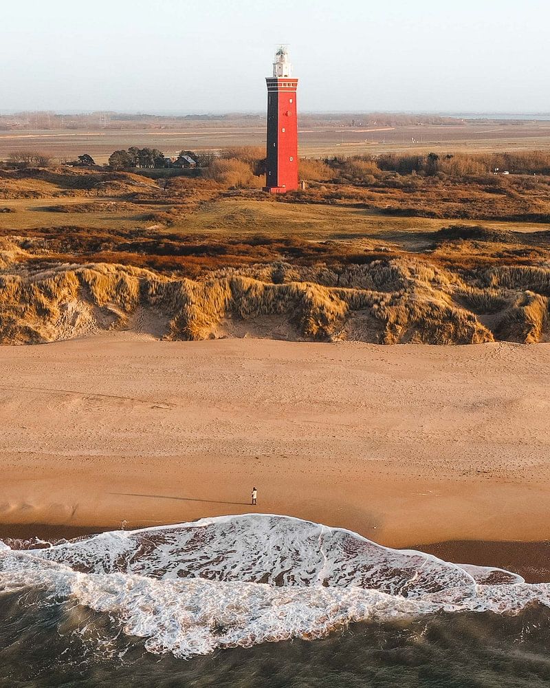 Der Leuchtturm von Ouddorp, Westhoofd, vom Meer aus fotografiert.