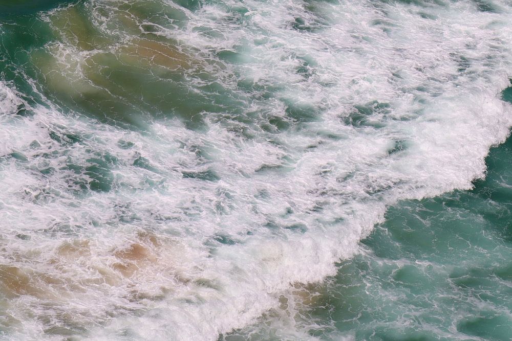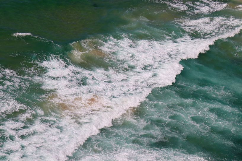 Ein wunderschöner Anblick des ruhigen Ozeans in der Nähe von Sydney, Australien. Die Wellen brechen an der Küste und bilden eine wunderschöne Mischung aus Blau, Grün, Weiß und Sandfarben.