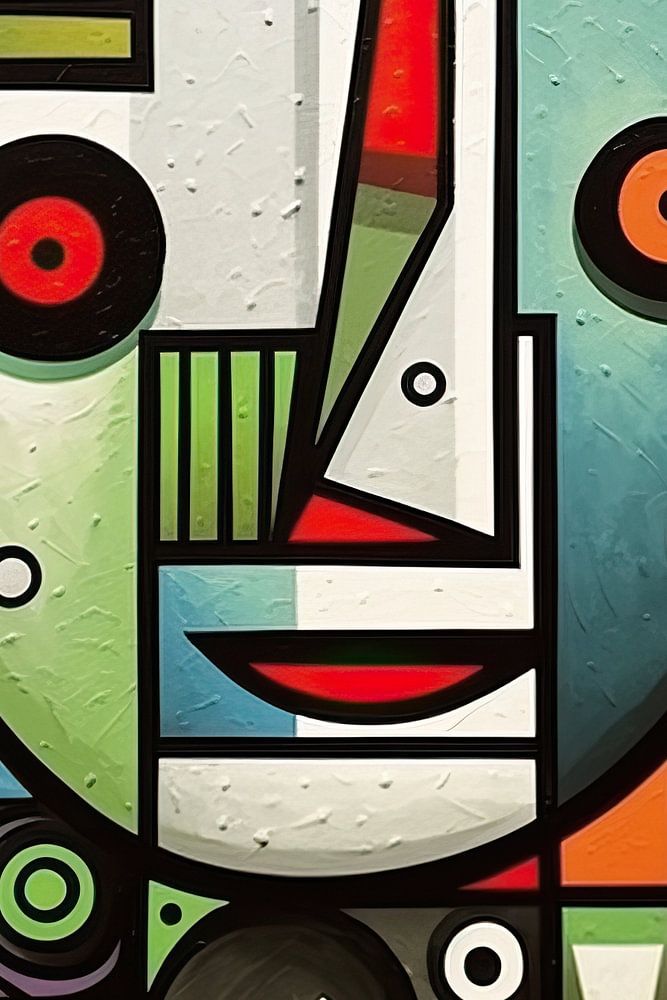 Picasso liebte es, mit Formen zu spielen und sie anders darzustellen, als sie in der realen Welt erscheinen. Was die Farben betrifft, so kann man in diesem Gemälde auffallende und lebhafte Farben entdecken. Manchmal sind sie leuchtend und intensiv, ein anderes Mal weich und subtil. Picasso verwendete Farben, um Emotionen zu vermitteln und bestimmte Teile des Gemäldes zu betonen. Je nachdem, wie sie eingesetzt werden, kann man sich glücklich, traurig, ruhig oder aufgeregt fühlen.