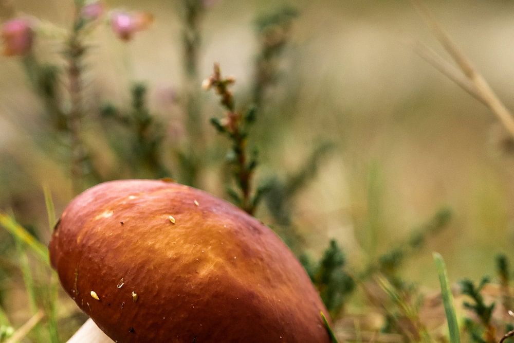 Aan de bosrand vond ik op Terschelling deze eenzame paddenstoel, omringd door dopheide.