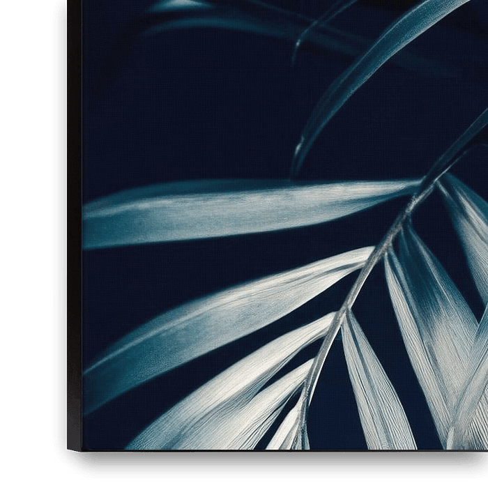 Bestelle das digitale Kunst Bild Palmblätter Nacht von Poster Art Shop als Reproduktion auf Leinwand, Alu-Dibond, als Poster, Fototapete oder Acrylglasbild.