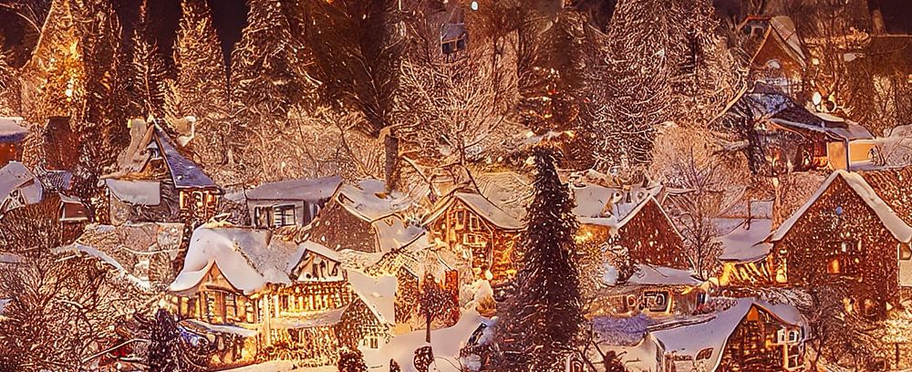 Panorama Kleines Weihnachtsdorf im Winterkleid Illustration