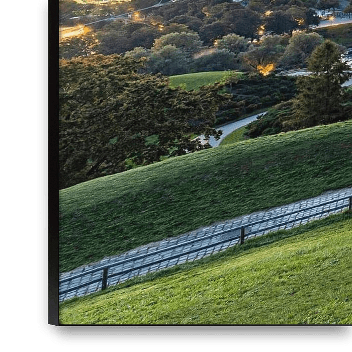 Ihre gewählte Kunst auf Leinwand, gespannt in einem Aluminiumrahmen. Schnell und einfach austauschbar für eine frische Ausstrahlung und ganz nach Ihren Wünschen.