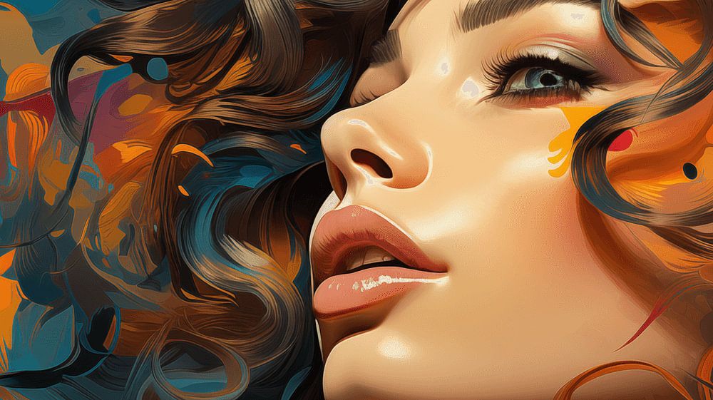Panorama abstrakte Porträt Malerei eine jungen Frau im Bodypainting Kunst Design