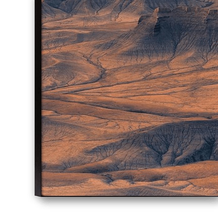 Ein großer Panoramablick auf die Badlands bei Sonnenaufgang, im südlichen Teil von Utah, in der Nähe von Hanksville. Vereinigte Staaten.