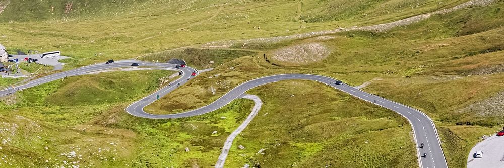 Ein Panoramablick auf die Großglockner Hochalpenstraße, eine Panoramamautstraße in den österreichischen Bundesländern Salzburg und Kärnten. Die Straße verbindet Zell am See mit Lienz und befindet sich im Nationalpark Hohe Tauern.
