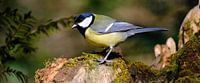 Bestelle dieses Vögel Wandbild Panorama einer Kohlmeise von Sabrina de Vries als Kunstdruck auf Leinwand, Alu-Dibond, als Poster, Fototapete, ArtFrame oder Acrylglasbild, maßgefertigt in höchster Qualität.