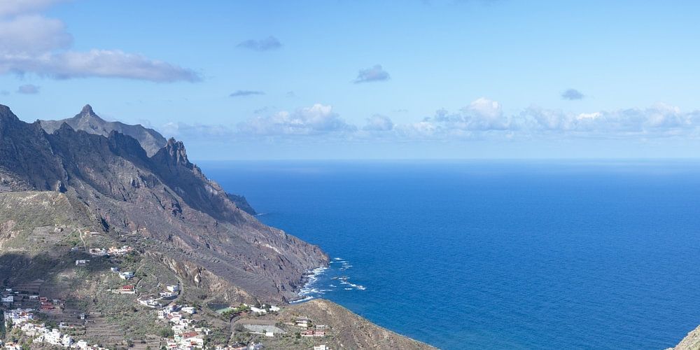 Das Panorama des Cabezo del Tejo im Herzen des Anaga-Gebirges auf Teneriffa bietet einen atemberaubenden Blick über die ungezähmte Schönheit der Nordostküste der Kanarischen Inseln. Von diesem majestätischen Aussichtspunkt schweift der Blick über steile Felsklippen, die abrupt in die Weiten des Atlantischen Ozeans abfallen, und die üppig bewachsenen Hügel, die typisch für die immergrünen Lorbeerwälder des Anaga-Massivs sind.