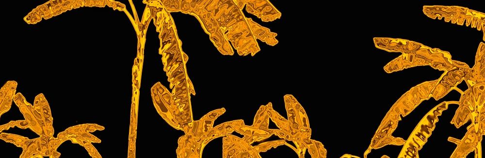 Digitale Illustration von Bananenstauden in Gold auf Schwarz