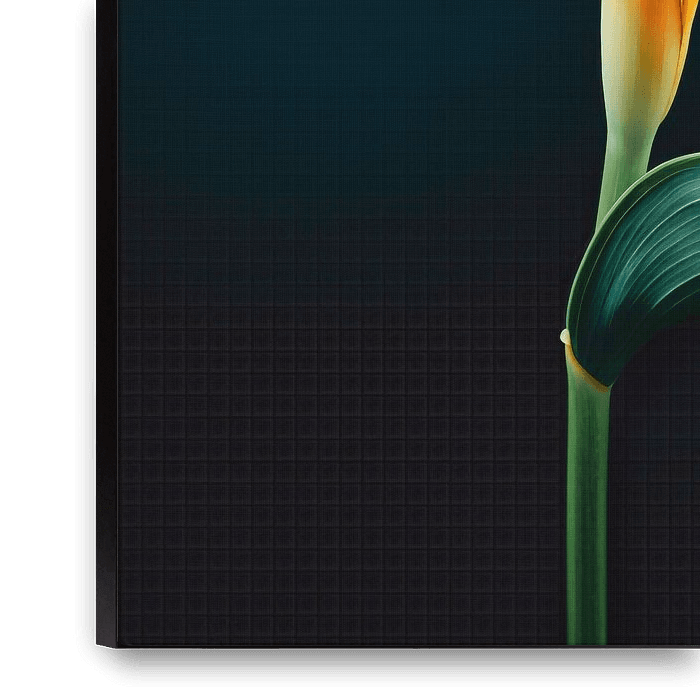Ihre gewählte Kunst auf Leinwand, gespannt in einem Aluminiumrahmen. Schnell und einfach austauschbar für eine frische Ausstrahlung und ganz nach Ihren Wünschen.