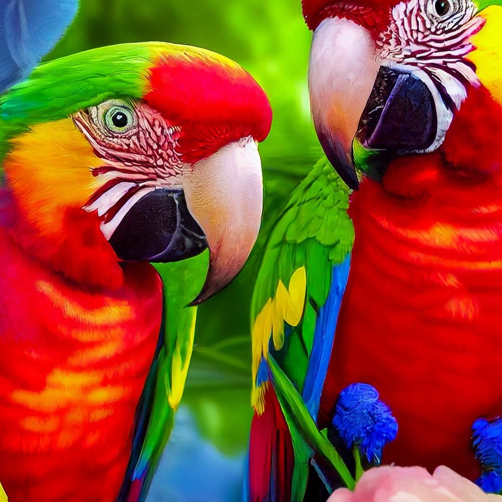 Papageien auf dem Ast, Gemälde ART Illustration