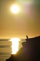 Papageientaucher in der Mitternachtssonne auf Grimsey, einer Insel nördlich von Island. Im Juni geht die Sonne über Grimsey unter, und Sie können die ganze Nacht hindurch die Aussicht genießen. Die Papageientaucher scheinen das auch zu tun.