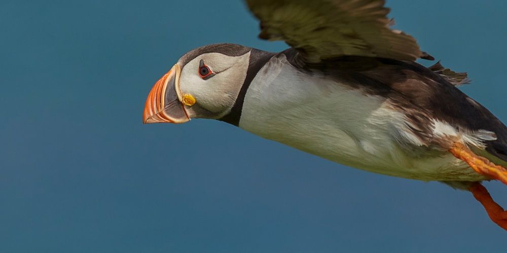 Ein fliegender Papageientaucher im Nordosten von Island. Mit ihren schönen Schnäbeln und ihrem niedlichen Verhalten waren sie ein Höhepunkt meiner Reise in dieses besondere Land.