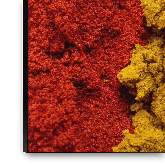 In diesem Werk sind Paprika und Currypulver nebeneinander in einer ruhigen Komposition festgehalten, in der Farbe und Textur die Hauptrolle spielen. Das tiefe Rot des Paprikas kontrastiert mit dem warmen Gelb des Currys. Feine Körner, kleine Haufen und subtile Übergänge offenbaren die Struktur der Gewürze und verleihen dem Bild eine…