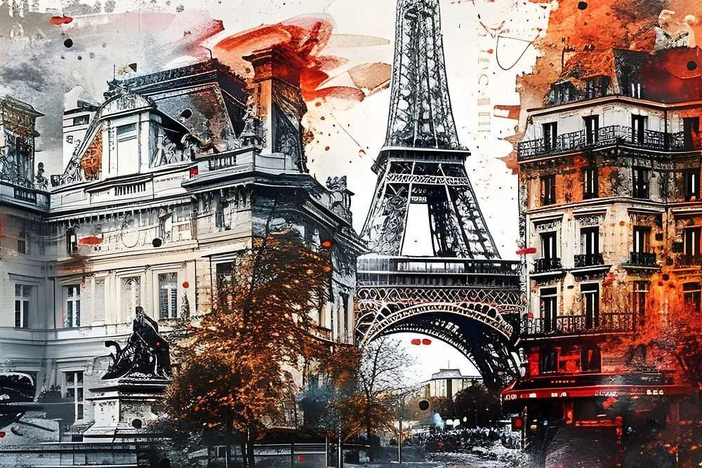 Paris in Minimal: Eine Collage der Ikonen. Inspiriert von Blanka Gomez' Stil präsentiert diese Illustration eine reduzierte Darstellung verschiedener Bauwerke von Paris. Durch klare Linien und sanfte Farben werden die architektonischen Meisterwerke der Stadt auf subtile Weise vereint, um eine zeitlose Eleganz zu vermitteln. Tauchen Sie ein in die Welt von Paris durch die minimalistische Linse dieser Collage und lassen Sie sich von der Schönheit der Stadt der Liebe verzaubern.