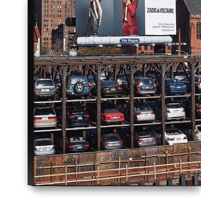 Bestelle das Foto Parkhaus mit Blick auf Manhattan von Michael Moser als Reproduktion auf Leinwand, Alu-Dibond, als Poster, Fototapete oder Acrylglasbild.