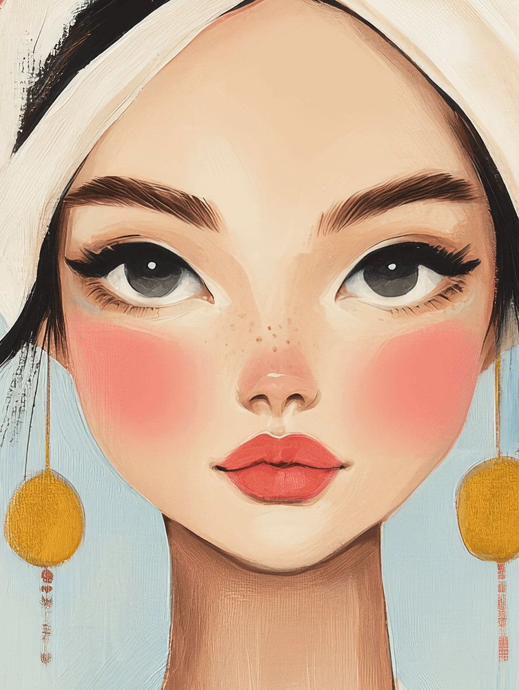 Diese Dame sieht vielleicht ruhig und teilnahmslos aus, aber mit ihrem strengen Blick und den riesigen Ohrringen scheint sie vor allem zu sagen: "Ich bin stilvoll, und nein, ich gebe mir keine Mühe. " Der sanfte blaue Hintergrund fügt gerade genug Weichheit hinzu, um zu zeigen, dass sie doch ein wenig sensibel ist. Eine moderne Powerfrau, mit einem Hauch von 'Ich-habe-keine-Zeit-für'-Vibes!