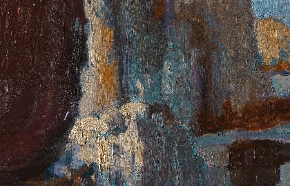 Figari stellt in diesem Werk in Braun und Blau eine bestimmte Nische auf dem Lande dar. Ein einfaches, kubisches weißes Haus mit einer Tür und einem Fenster spiegelt sich in einem kleinen See. Die Äste einiger Trauerweiden fallen über das Wasser und das Haus. Ein großer dunkler Bereich auf der linken Seite dieser Szene scheint die düstere Atmosphäre zu verstärken. Das Werk ist in einem lockeren Stil mit vielen Farbflecken gemalt, eine Technik, die deutlich den Einfluss des Malers Pierre Bonnard zeigt.
