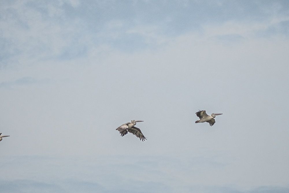 Das Tolle an Vögeln ist, dass sie immer in einer anderen Formation fliegen. Als diese fünf Pelikane im Senegal vorbeizogen, folgte ich ihnen durch den Himmel, bis sie in einer Formation flogen, die mir gefiel. Dabei habe ich die Wolken nicht bemerkt, die perfekt in zwei horizontale Linien aufgeteilt sind und einen schönen Rahmen für die Vögel im Flug bilden.