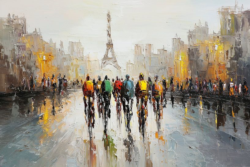 Bestelle dieses abstrakte Wandbild Peloton in Paris | Tour de France | Radsport von Lauren Wilde als Reproduktion auf Leinwand, Alu-Dibond, als Poster, Fototapete oder Acrylglasbild.
