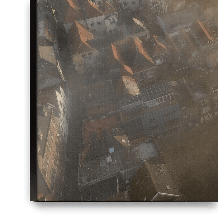 Bestelle das Foto Peperbus-Kirchturm in Zwolle über dem Nebel von Sjoerd van der Wal Fotografie als Reproduktion auf Leinwand, Alu-Dibond, als Poster, Fototapete oder Acrylglasbild.