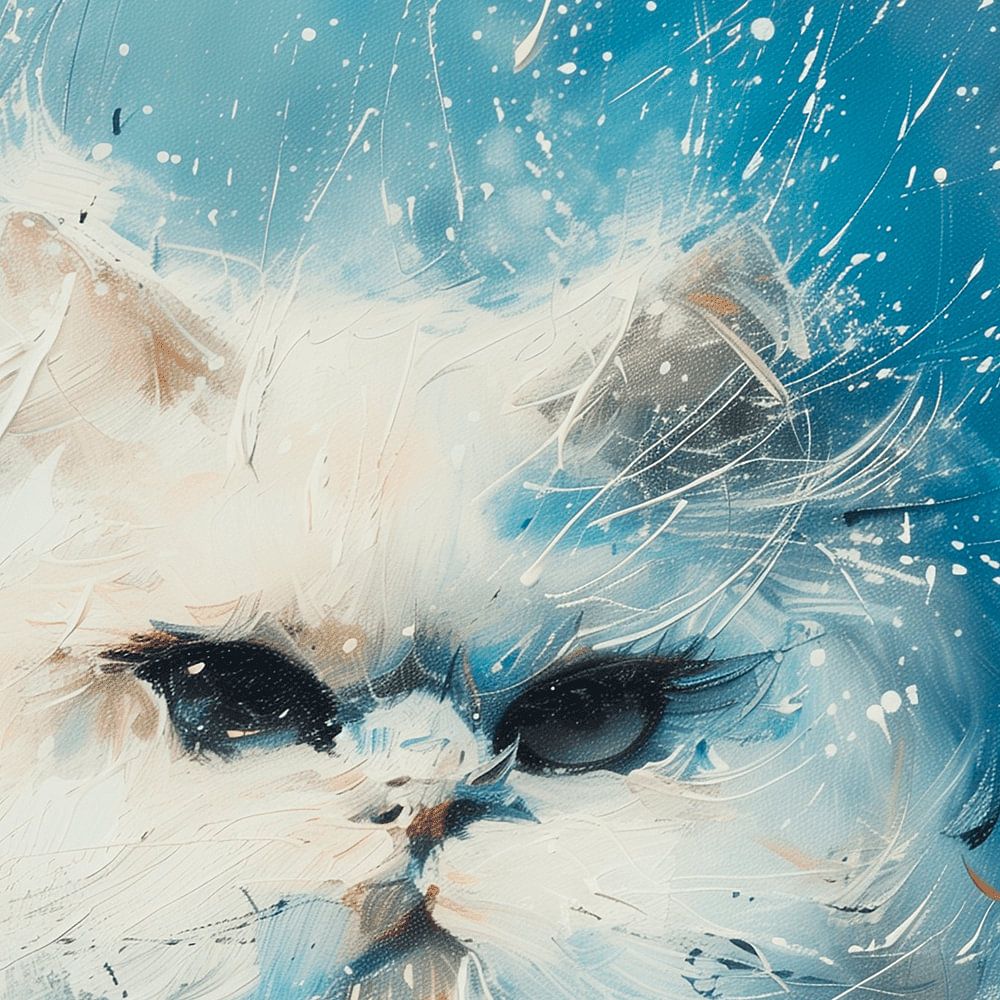 Mit AI = Midjourney habe ich diese wunderschöne weiße Persianerkatze zum Leben erweckt und die Fellnase in eine Schneelandschaft gesetzt.