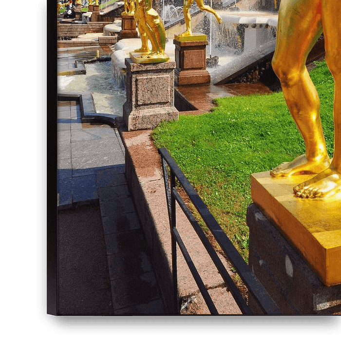 Gouden beeld in de tuin van het Peterhof, het zomerpaleis van de tsaar nabij St. Petersburg.