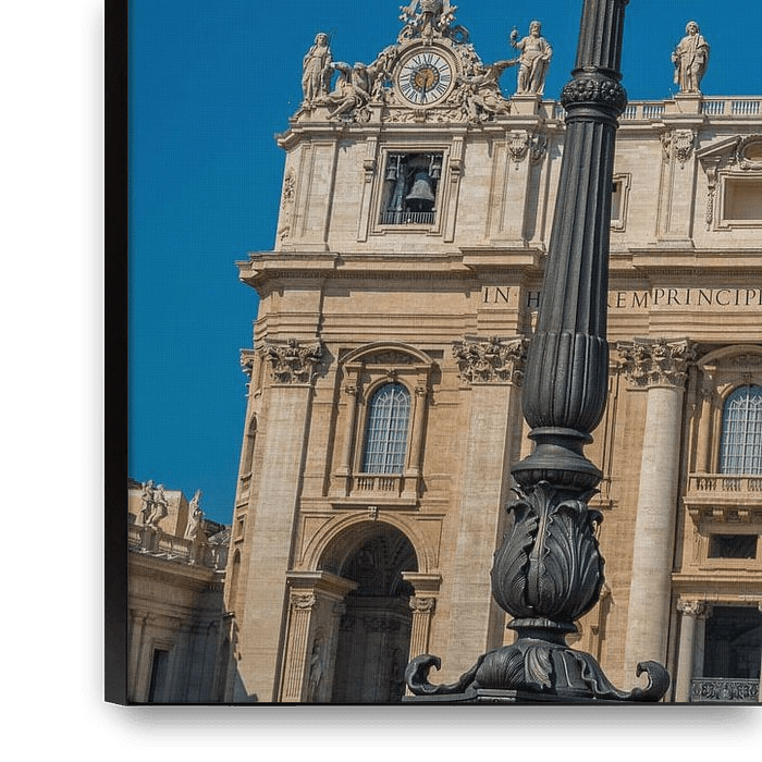 Laternenpfähle des Petersplatzes und der Basilika im Hintergrund