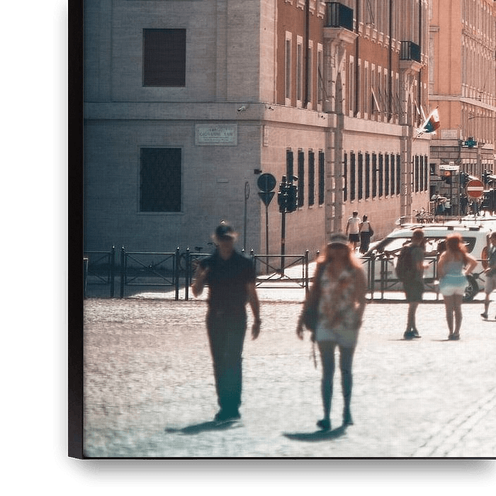 Ihre gewählte Kunst auf Leinwand, gespannt in einem Aluminiumrahmen. Schnell und einfach austauschbar für eine frische Ausstrahlung und ganz nach Ihren Wünschen.