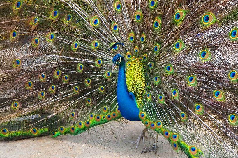 Bestelle das Foto Pfau schlägt ein Rad von Matthias Stolt als Reproduktion auf Leinwand, Alu-Dibond, als Poster, Fototapete oder Acrylglasbild.