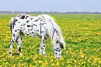 Bestelle dieses Landschafts-Wandbild Pferd oder Pony in Weide mit gelbem Löwenzahn von Ben Schonewille als Reproduktion auf Leinwand, Alu-Dibond, als Poster, Fototapete oder Acrylglasbild.