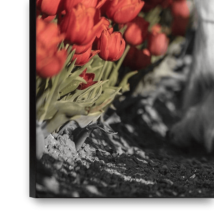 Bestelle das Foto Pferd unter den roten Tulpen von Daliyah BenHaim als Reproduktion auf Leinwand, Alu-Dibond, als Poster, Fototapete oder Acrylglasbild.