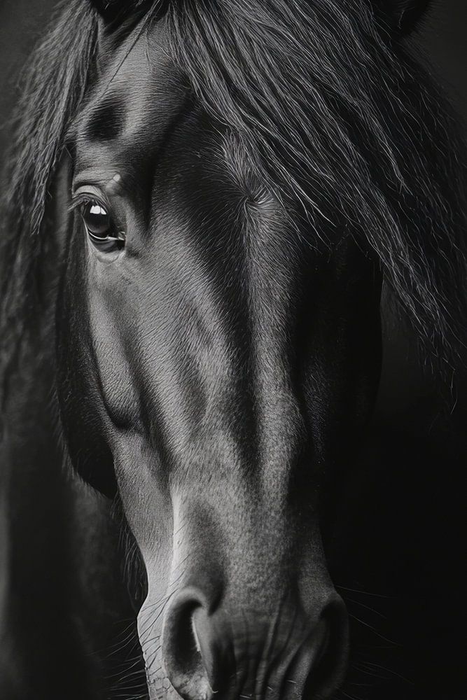 In einem faszinierenden Spiel aus Licht und Schatten offenbart sich die majestätische Präsenz eines edlen Pferdes. Der intensive Blick und die sanften Konturen schaffen eine Atmosphäre von Ruhe und Erhabenheit. Ideal als Akzent in einem Wohnzimmer, verleiht dieses Kunstwerk jedem Raum eine edle Note und zieht alle Blicke auf sich.