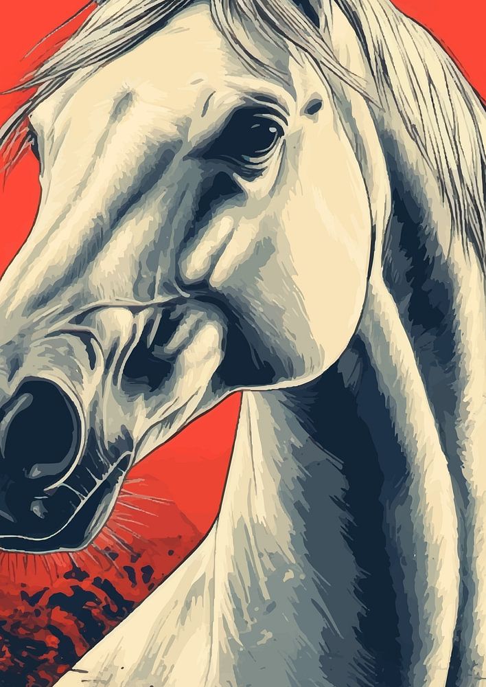 ein Kunstwerk, das ein Pferd in einem Rahmen darstellt.
